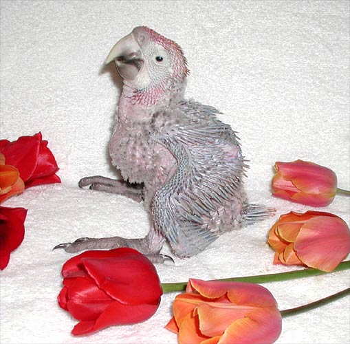 4 week old baby Capri Macaw, "Flame" on 4/27/06