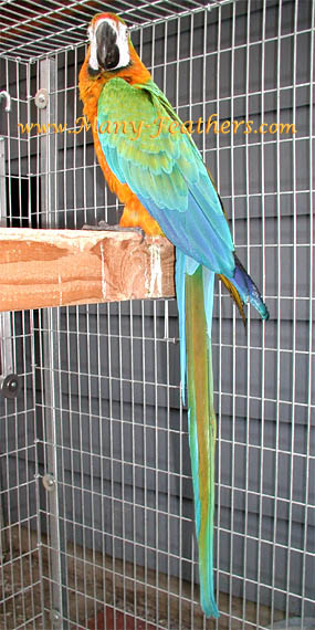 is beautiful male Hybrid Catalina Macaw, Awesome.